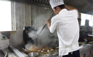 每天都要做900多名员工的午餐,并且要在午饭时间做好真是极难的技能。