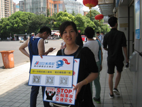 大家好,经过我们的不断努力我们的官方微信已经拥有1万会员了。为了更好的宣传我们的官方微信小编们出现在上海的大街小巷。还得到了大家的支持!下面的照片是齐藤顾问在为推广微信时为我们的新会员颁发小礼品,大家其乐融融。