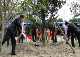 庆典现场,来自市镇机关的领导、三国集团社长生田久贵等集团公司领导一同为浙江三国植下了一颗蕴含"坚贞不屈"之意的罗汉松,表达了对浙江三国今后继续朝着健康、良性的方向持续发展的美好期望。