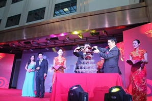 5时,第二环节——庆典晚会在观城宾馆拉开序幕。市镇机关领导、集团公司领导及员工等一千多人欢聚一堂,通过精心准备的回顾短片,共同见证了浙江三国公司二十年来的辉煌历程,分享这喜悦的时刻。
