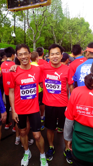 昨夜雨未干,今晨我们站在马拉松的起跑线上心情紧张。早上8点,公司40多名参赛员工代表公司和来自各地的多名参赛选手开始了比赛。 从起跑开始,全程马拉松赛道成为一条欢乐的长河。参赛员工兴奋地奔跑在美丽的赛道上,飘扬的公司司旗像一艘小船流淌在欢乐的长河中。