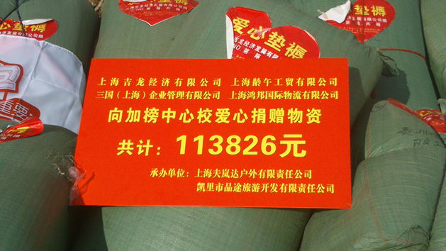 7月从江县加榜乡地处边远的月亮山腹地美丽如画,三国(上海)企业管理有公司以及3家企业到从江县加榜乡中心校开展爱心捐赠活动。捐赠活动上,来自上海的几位爱心小朋友与该乡中心校的同学们互相问好,询问对方的兴趣爱好、学习成绩、理想目标等情况。该乡共有五所小学,两个教学点。由于地处偏远,交通闭塞等各方面原因,该乡的教育事业仍较为落后。还有相当一部分农村学生的家庭生活条件比较困难,冬天没有保暖的被子,没有学习用具,没有书包,没有课外读物;各所学校的硬件设施也跟不上新时期人民教育事业的需求,有些学校没有食堂,没有餐桌……。这次来自上海的四家爱心企业和各界爱心人士的善举为该乡中心校的孩子们解了燃眉之急。据悉,本次爱心捐赠活动,上海的四家爱心企业为该乡中心校的同学们送来购买学生食堂餐桌现金8990元、笔记本电脑2台、品牌书包299个、品牌背褥160床、各类图书813本、学习用具和体育用品若干,折合人民币113826元。