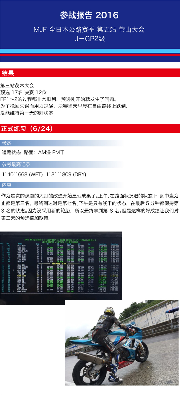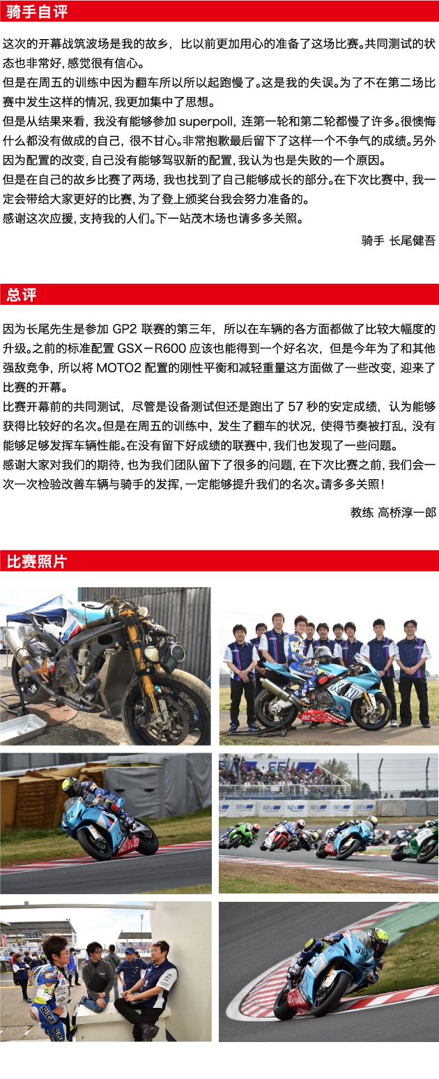 参赛级别/车型:J-GP2级别/铃木 GSX-R600