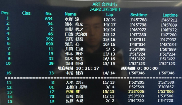 内容:在预选前半联合测试的中集中为达到更好的节奏状态而跑。但是在中盘更换新的轮胎的时候,和选手之间交流有误,得到了错误的指示,最终没有达到预想的时间,时间上也比联合测试迟了0.2秒,最终15秒的结果。